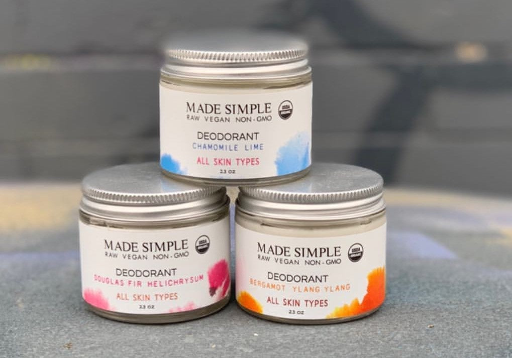 For All Skin Types. Our deodorants start with a blend of certified organic coconut oil, which soothes skin, and arrowroot, which absorbs moisture. Essential oils are then added for their bacteria-fighting properties and fresh scent. These 100% plant-based ingredients are carefully balanced and mixed to create the optimum formulation. For those who are sensitive to deodorants with baking soda, these are an effective option. And without added water you are getting a concentrated product that lasts. The anti-bacterial properties of essential oils act as a natural deodorant while still allowing your body to perspire and release toxins in a natural way. No potentially harmful preservatives, additives, fillers or micro-beads are utilized in our certified organic deodorant formula. Our glass jars are easily reused or recycled and avoid leaching associated with plastic packaging.